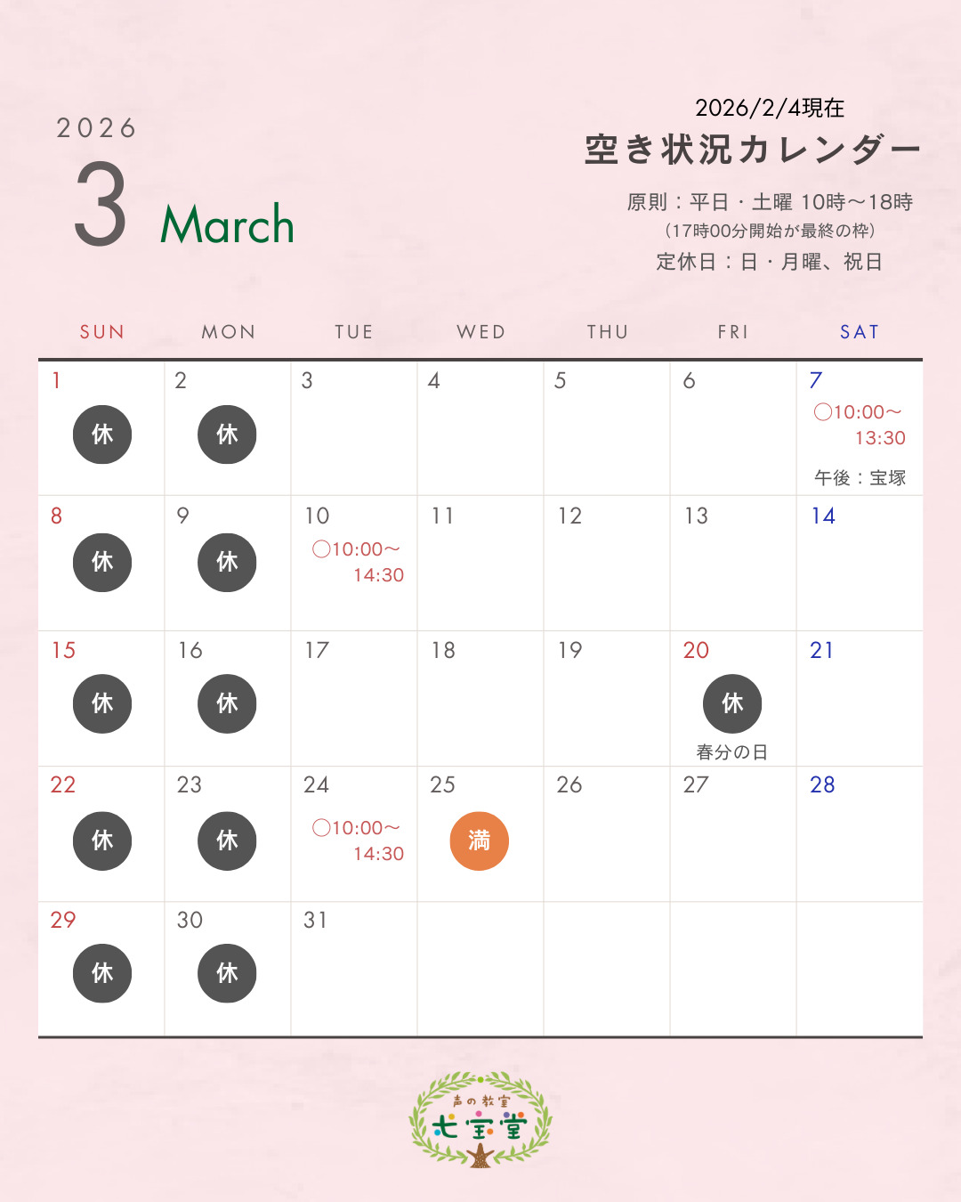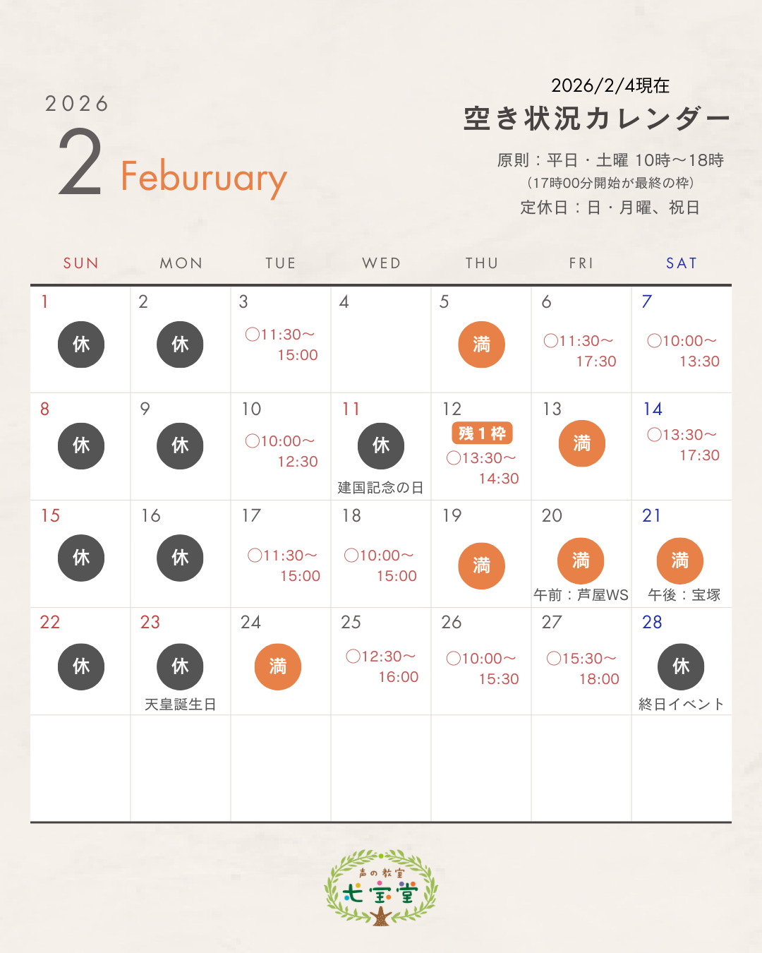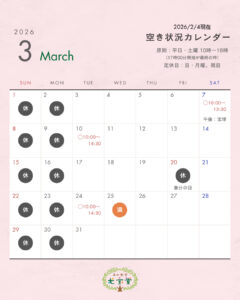 4〜5日おきに更新してます。 2週間先くらいまでは満席になることが多いです。 受けたい!と思われてる方はお早めにご予約くださいませ〜🙏